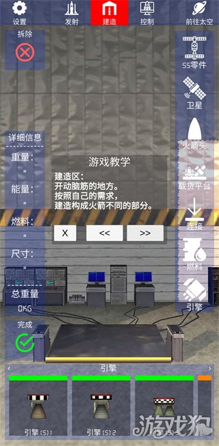 2、在建造区当中我们需要开动脑筋,按照自己的需求开始建造火箭;