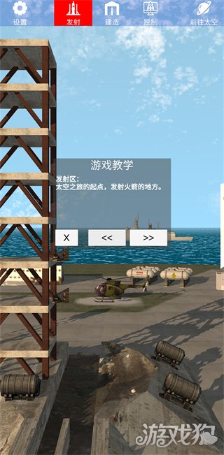1、首先我们进入航天火箭探测模拟器游戏中,在发射区中是天空之旅的起点,发射火箭的地方;