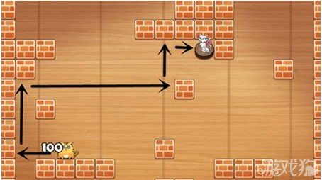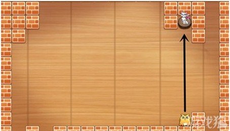右移之后小猫会一直向右滑动,直到被砖块挡住,接下来直接上移就可以过关啦!