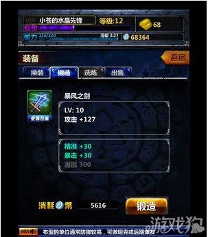 锻造可以提高一件装备的等级,同时该装备的基础属性、潜能及暴击、闪避等特性也会随之提高。