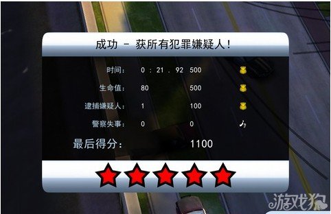 游戏中警车不小心撞到别的车子或是障碍物,都会消耗生命值,玩家们要尽量避免碰撞,生命值越高,获得五星的几率就越大。