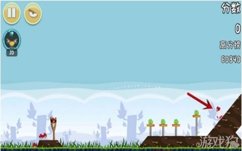 技巧:这一关直接打中圆球,让球滚下去后将小猪压扁,这样分数会比较高一点~