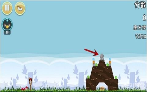 小编讲解:这个关卡的关键就在于那个大石头,打到图片上指出的位置,一只小鸟就能搞定咯!