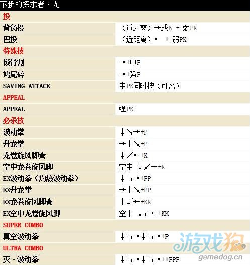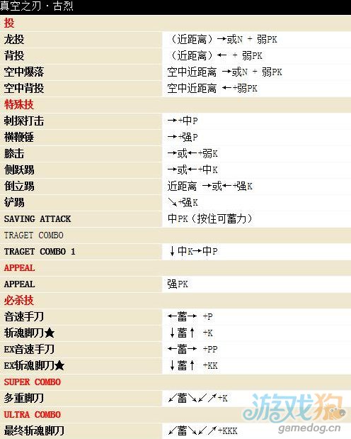 街头霸王4古烈出招表:
