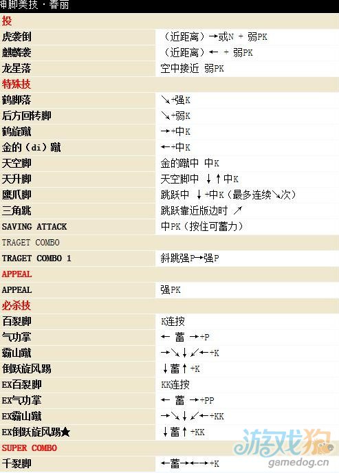 街头霸王4春丽出招表: