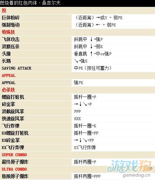 街头霸王4桑吉尔夫出招表: