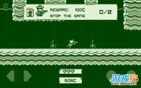 左下角是方向键,右下角B是射击,A是跳跃,中间显示牛仔生命数和金币数,操作界面和游戏主界面十分简洁。