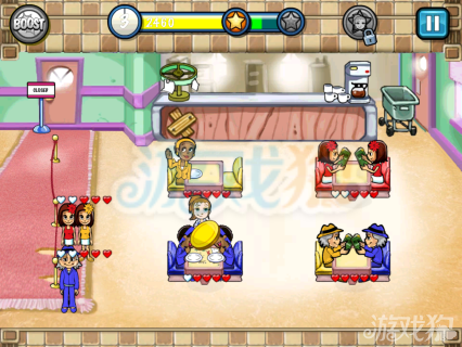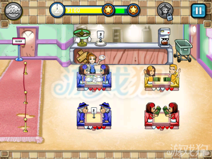 客人的急躁程度虽然我们在现实生活中很难量化,但是在这款游戏中却可以,每个客人的下面都会有星星,星星越多就代表着越淡定,星星越少就越急躁,所以我们要时刻注意它们,优先为急躁的客人服务,不能他们等不急走掉了就得不偿失了。