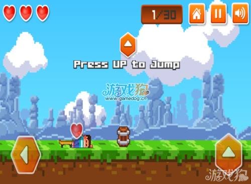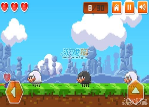 这里就看玩家们的反应了,难度不是很难,但是这里和二连跳不一样,这里的障碍物空间比较的大,玩家们需要在两个障碍物之间,再走一格,然后在起跳,否则的话,是会碰到小绵羊的。
