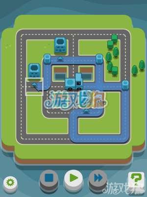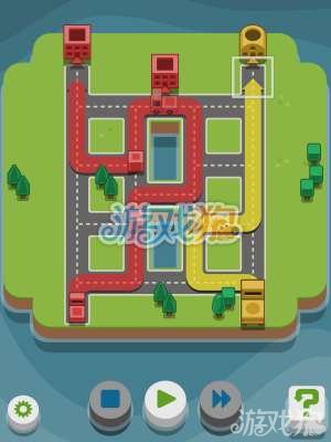 这一关我们要注意的就是不要让红色车辆抢了黄色的路线,或者让他们同时出现在某个路段。正确方法可以看下面的方法。
