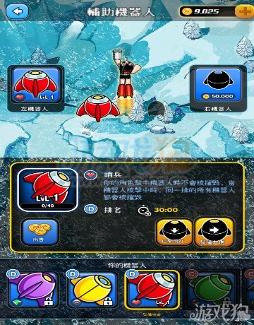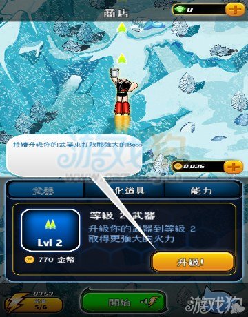 3、还有一点非常重要的的就是我们除了道具和协助机器人之外,我们自己的火力升级也是新手玩家必须要了解的,我们只有升级自己的火力我们才能够迅速的消灭前方的敌人,因为随着游戏的继续敌人的防御能力会越来越强我们不升级火力的话是没有办法消灭掉敌人的,所以新手玩家一定要记住去升级我们自己的火力。
