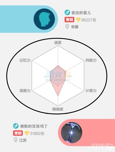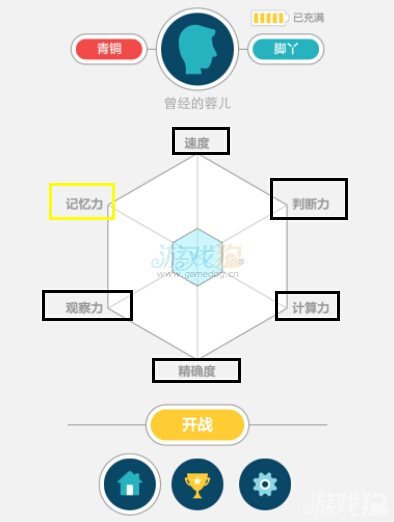 进入游戏中,我们可以看到关于我们的六个方向的能力,如果你的计算能力特别的强的话,那么你的综合能力就会往计算力偏移,从而玩家们可以对于自己的能力有着一目了然的判断。