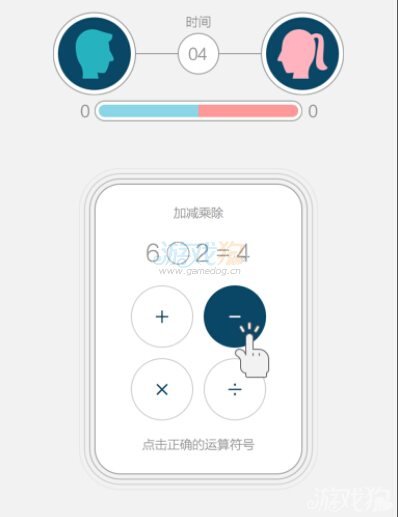 游戏一共分为三个回合,每一个回合的题目的类型都会不同,会在每一个回合里面出现三个,然后随机的抽选出一个题目,如上图所示,我们这一个回合就会在小学算术、加减乘除和点击加法里面随机的抽选出一个。虽然题目都是比较简单的,但是想要在数量上面赢得对手,就需要我们拥有一个敏捷的思维和判断力。