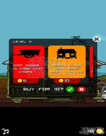2、在游戏中我们获得多少只的火鸡都会转化成我们人物的经验,当经验达到一定的程度之后我们就会升级,升级能够让我们人物获得新的能力,让我们过关变得更加的轻松,等级升的越高我们能够获得的能力越多,所以玩家在游戏中要尽可能的获得多的火鸡迅速的提升我们人物的等级这样我们才能够更加顺利的进行游戏。