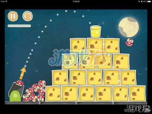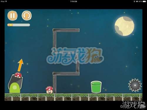 游戏的操作与同类作品有一点不同,新手玩家们在没有简介的情况下可能会花费点时间,手指点击大炮不松,上下滑动可以调整大炮的发射口方向,左右滑动屏幕的话我们可以看到炮口处有一个进度条,进度条表示了射击时的力度,松开手指,大炮就会将将蘑菇给发射出去了。