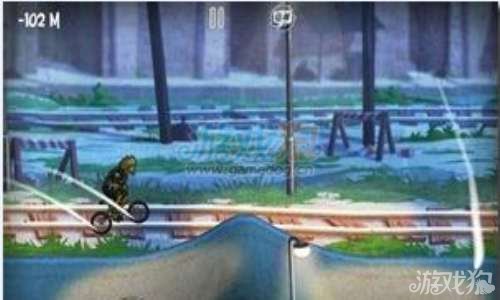 3、当我们上到高坡,按住屏幕不动向后滑动,我们就能够顺利的完成后空翻动作,我们要记住这几个能够加分的动作,这样我们才能够顺利的通过每一关的考验。