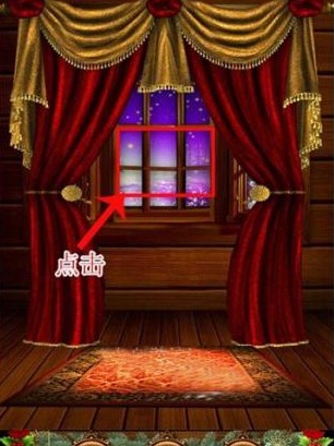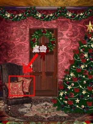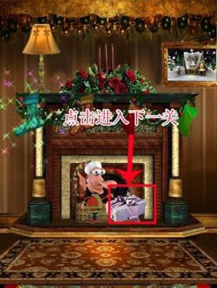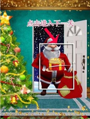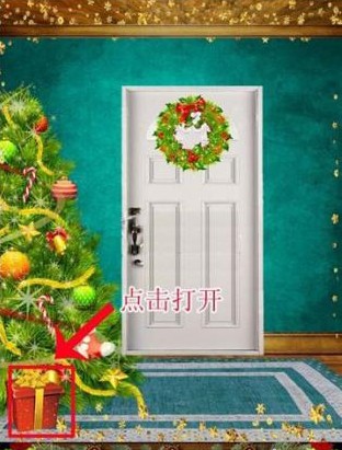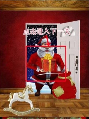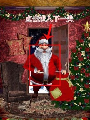 接着,点击打开房门,圣诞老人进入房间,点击圣诞老人手上的礼物进入下一关(如上图白框所示)。