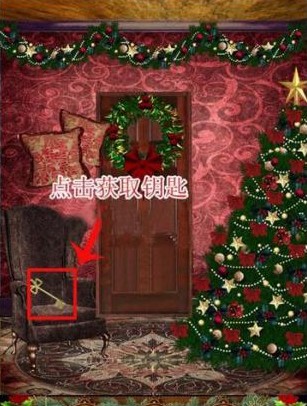 获得钥匙之后吗,点击物品栏中钥匙,使用钥匙将房门打开,等着圣诞老人进来,点击圣诞老人圣诞老人手上的礼物个,恭喜进入下一关(如上图红框所示)。
