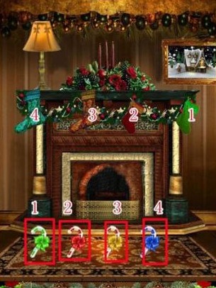 进入100份圣诞礼物第4关游戏界面之后,我们会看见地毯有四根魔棒,上面有四个袜子,将地毯上四根魔棒对照数字,分别放进四个袜子里面(如上图数字所示)。