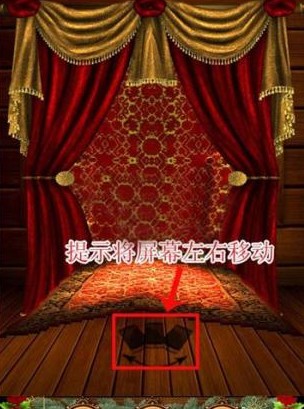 进入100份圣诞礼物第3关游戏界面之后,我们首先点击地上地毯,地毯往上移了一点,看见地板上有一个提示,提示往左右移动,将屏幕左右移动(如上图红框所示)。