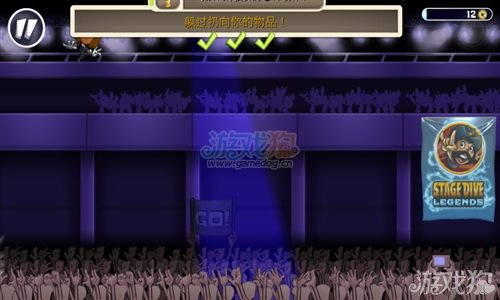 3、躲避人群扔出来的物品,随着游戏的继续,人群中还会向我们扔来杂物,我们一定要注意躲避这些物品,这样我们才能够顺利的通过比赛的考验,否则被砸中就会游戏失败。