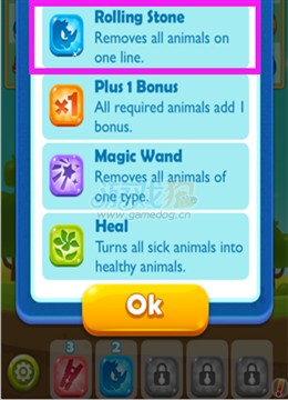 1、犀牛冲撞,点击使用时候,我们会召唤一头犀牛出来,帮助我们消除指定的一行宠物,能够消除整整一行的图案,还是非常的厉害的。