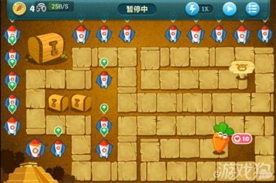 然后,就可以开二倍速把手机扔在一边了,只要隔两三分钟看看有没有掉落礼包就好,这个布局可以一直玩到通关,但是不一定能得到金萝卜——我最高一次挂机刷到第十九波萝卜都没有被咬,然后终于掉落礼盒了,我就重新开始了。