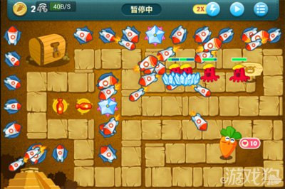其次,在空白处种上两个冰冻星星,升到顶级,然后用剩下的钱把挨着星星的火箭尽可能的升级