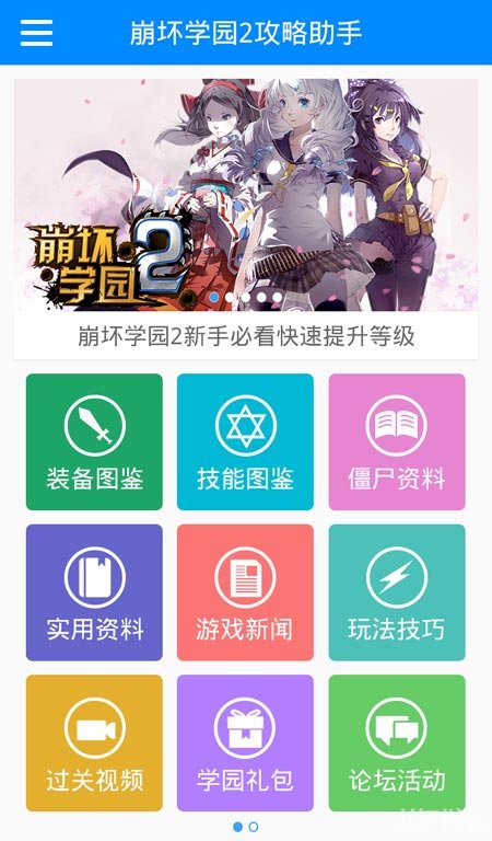 崩坏学园2助手功能主要有装备图鉴、技能图鉴、僵尸资料、实用资料、游戏新闻、玩法技巧、过关视频、学园礼包和助手大全共九大模块功能;