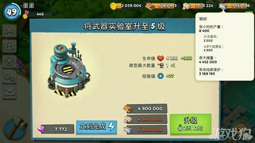 5级的武器研究所你们怎么升级的,490w钢材。之前攒了两天资源,当天3掠夺嗑药打博士和10个NPC。有时候是两天打的特别多,把基数累积的很高,运气好的话被打次数少,然后当天嗑药升,我是先升一个小大件,然后取消升大大件。先升一中大件,等第2天取消,回来一半资源在加上你打的。 把保险库升满级,配合战队奖励,潜水的宝藏,存一点资源,差不多150左右可以存住。然后掠夺磕药开撸。比如我才48级,钢材每个玩家是8一10万,吃三药掠夺,150掠夺,12一15万/人,加NPC加博士,490万不多。