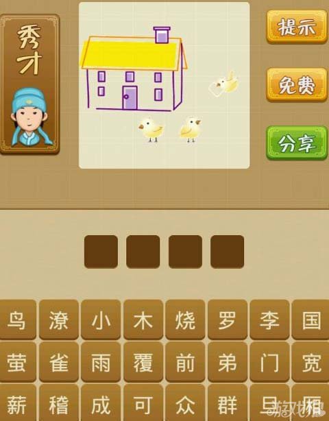 玩家在看到这样的组合的时候,会想到什么呢,可能很多的玩家和小编一样,没有什么头绪。那我们就仔细的来分析一下这张图,房子的门前有三只麻雀,其数量不多。