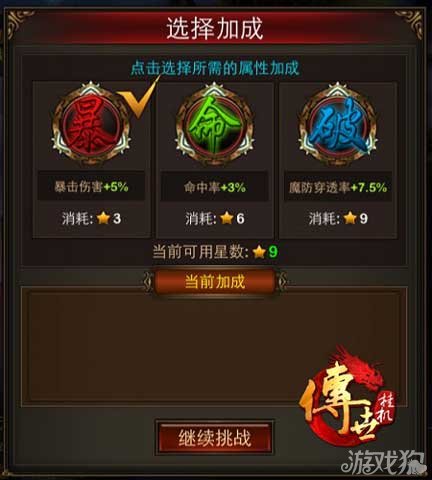 通天塔第一期开放至20层,每一层分三关,每一关又分为三个难度供大家挑战,难度越高,奖励越丰厚,勇士获得的星星数也越多。一般来讲,通关一星难度获得一颗星星的奖励,两星难度获得两颗,三星难度获得三颗。但星星如何给勇士带来BUFF加成呢?闯关前,勇士可选择消耗星星来获得增益效果,消耗星星越多,增益效果越惊人。在此小编特别推荐暴击伤害、暴击率、攻击力三大类别的属性加成,它们将让勇士通关通天塔之旅带来最为直接的杀伤力。