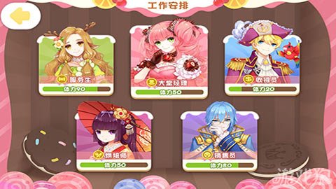 蛋糕物语的世界充满了幻想和多彩,这里有激萌的萝莉,还有傲娇的正太,由于不再是市面上的西游和三国题材啦,此番这帮萌哒哒的日系角色们俨然化身为蛋糕店里的可爱员工。他们有的是大堂经理,有的是收银员,有的是烘焙师,还有的是销售员和服务生。接下来小编用几幅游戏截图为大家展示一下这款游戏的主角与场景特色。