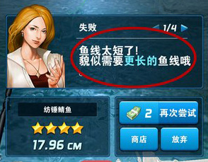 避免该装备断最简单直接的办法就是购买更长的该装备,在商店内玩家可以挑选适合自己的该装备。金币可以通过卖掉钓上来的鱼获得。