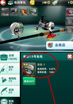 到我的背包里,将挑选好的该装备装备上,然后再进入钓鱼的时候就能用上新装备的该装备了。记住该装备的数量是有限的,当该装备用完之后需要再次购买新的该装备。