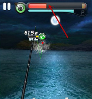 在和鱼相持的过程中,要避免力度槽变满太久。只要力度槽满了超过1秒钟,该装备就会断掉,所以要避免该装备断掉,就要让力度槽保持在安全的位置。