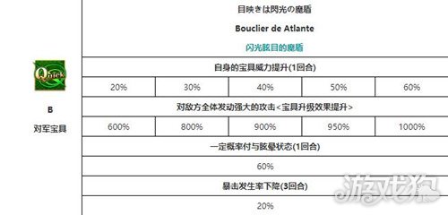fgo布拉达曼特宝具介绍,fgo布拉达曼特宝具闪光眩目的魔盾怎么样?fgo布拉达曼特这位从者还是非常有魅力的,相信不少小伙伴都很喜欢,那么布拉达曼特宝具怎么样呢?一起看看吧。 宝具效果为自身宝具威力提升,对敌人发动群体攻击,并且有一定概率眩晕敌人一回合,降低暴击发生率三回合。配卡为QQAAB,绿卡和红卡都是4hits,蓝卡2hits,EX5hits,NP率还是不错的,在技能以及CBA的加持下,进行连发还是可以的。 以上就是布拉达曼特宝具的介绍了。