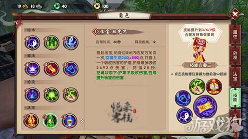 5、法宝技能【胎光咒】:给身边8m内的队友加血一次,并套上一个吸收伤害的保护罩,控魂状态下保护罩不吸收伤害,变成提升玩家的伤害。,敌强我弱时在非控魂状态使用可以当做保命技能。敌弱我强时在控魂状态下使用,快速脱离战场。