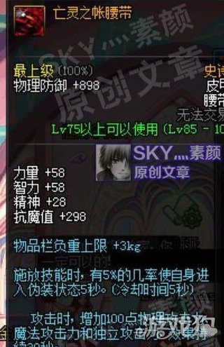[腰带:亡灵之帐腰带]:施放技能时5%几率伪装,攻击时增加100点三攻