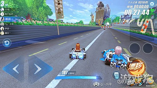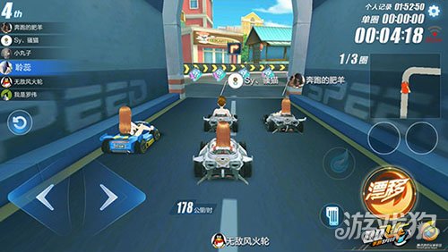 竞速模式可以说是纯看技术的赛车模式,其中有集氮气功能,可以通过各种漂移方式来蓄力氮气值,氮气满了之后就可以获得一个加速道具。玩家们玩竞速模式需要对地图拥有充足的了解,通过观看小地图来辨别路型,寻找最近的道路来走。