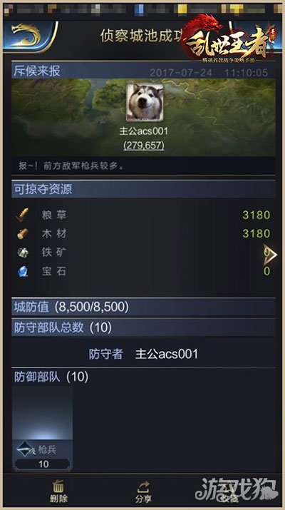 俗话说知己知彼百战不殆,为了提高进攻的胜率,我们最好在攻击敌人前选择侦查对方。花费一定的粮草和短暂的时间就可以获得周围敌人的情况,做好此准备可以获得事半功倍的效果。在邮箱里的战斗报告中可以根据获得的斥候来报部署相应的兵力,比如情报中发现对方枪兵较多,一方面由于枪兵会克制骑兵,所以我们可以略微降低骑兵的数量,防止过度损伤。另一方面,可以配设盾兵在前方承受伤害并派遣弓兵去增强输出能力,把减少的骑兵数量增加在弓兵上,提高弓兵力量,用弓箭去穿透枪兵。虽然二者没有克制关系,但也可以利用弓兵在攻击力上的优势去部署。当然这一切的根源都在于侦测技术上,另外烽火台建筑的提升也非常的重要,这个建筑大幅度的减少了我军的伤亡。