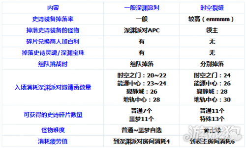 下面是时空裂缝和普通深渊掉落物品的对比表,这个表的数据只供大家参考,不是唯一数据。