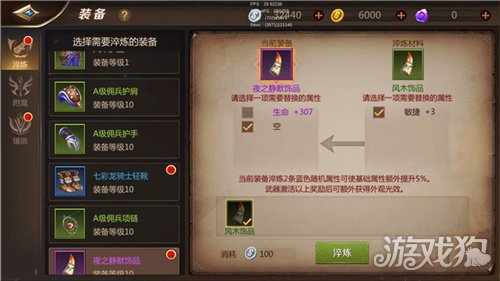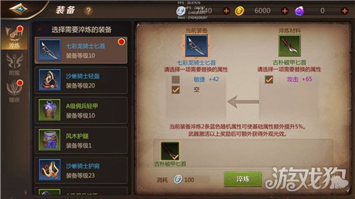 淬炼成功后,淬炼材料的装备属性转移,可分解装备获取附魔粉尘、银币。