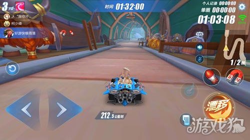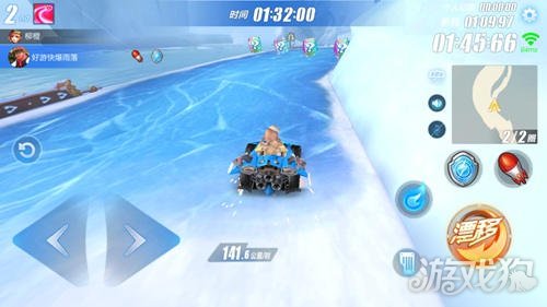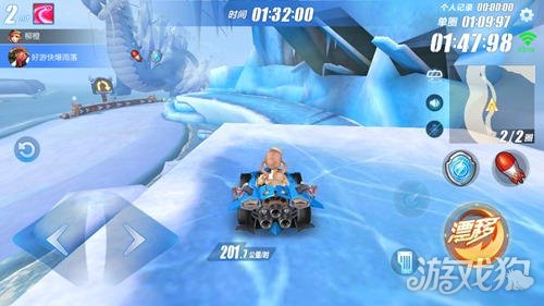 上层赛道前方会出现一个小断层,这个要特别注意,车辆靠右冲过去,如果靠左则会直接掉落到水里。