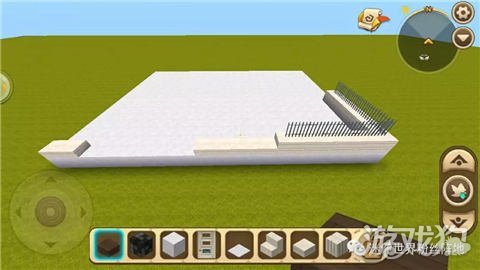 首先,我们先铺地,用白色硬沙块做成一个长21,宽16的地板;