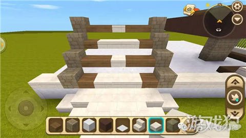 在我们留出的一点没有放搬砖的前面做出一个楼梯,同样也是用半砖,像下面图片中的样子就OK;