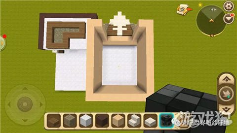 在用棕色硬沙块和白色硬沙块做出一个房间的框架;