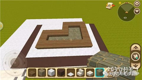 按照图片中用果木半砖围成这个图形,并将围起来的部位下方方块换成图片中的那种方块(知道这是哪个吗?);
