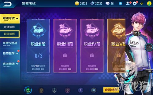 一般我们所说的驾照有两种,一种就是普通驾照,是关于比赛赛道的分类,不同驾照分别代表着不同难度的赛道,而另外一种就是职业驾照,总共有六个等级,每个等级可以提升5级等级上限。