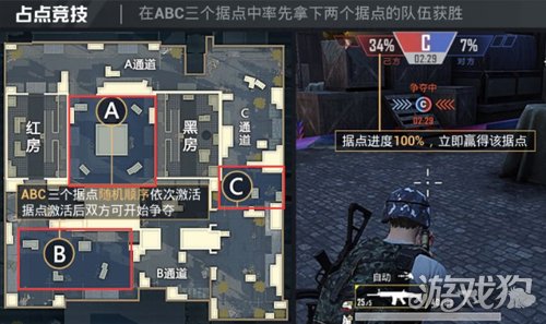 据点的激活时间设定为3分40秒,当一方完成100%进度占领时,该据点会关闭,并在3秒后开放下一据点。如果据点内同时存在两支队伍的玩家,该点状态会陷入争夺,此时不会为双方增加进度。在时间倒数结束之前,如果还没有任何一方到达100%进度,那么该据点则会由进度更高的一方获得。率先占领两个据点的队伍将会获得本场战斗的胜利!建议大家不要为了淘汰敌人,而把点丢了哦~